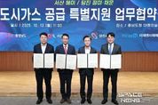 스페이스뉴스 스페이스뉴스 기자 | 충남도가 오는 2027년부터 서산 해미면과 당진 정미면·채운동 558세대에 도시가스를 공급, 도민 에너지 복지를 강화한다. 김태흠 지사는 13일 도청 대회의실에서 이완섭 서산시장, 오성환 당진시장, 송민섭 미래엔서해에너지 대표와 ‘서산 해미, 당진 정미·채운 도시가스 공급 특별 지원 업무협약’을 체결했다. 이번 특별 지원 사업은 도시가스 보급 소외 지역 주민들의 요청에 따른 것으로, 대상은 서산 해미 350세대, 당진 정미 126세대, 당진 채운동 82세대 등 총 558세대다. 투입 사업비는 도비와 시비, 서해에너지 부담 등 총 91억 5000만 원이다. 협약에 따라 도와 서산·당진시는 도시가스 배관 설치를 위한 특별지원금 확보와 행정 지원에 나선다. 서해에너지는 2027년까지 도시가스 배관 공사를 완료한다. 구체적으로 해미 지역에 대해서는 2년 동안 63억 9000만 원을 투입해 12.54㎞ 규모 배관을 구축한다. 내년 △순교성지∼조산리 마을회관 △해미중학교∼반양리 관터 등 2개 구간, 2027년 동암리 마을회관 일대 배관을