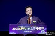 스페이스뉴스 스페이스뉴스 기자 | 대전시의회 조원휘 의장은 25일 대전컨벤션센터(DCC)에서 개최된 2025 대전미래교육박람회 개막식에 참석해 미래를 선도해 나가는 교육혁신 선도 도시, 대전을 위한 정책적 관심과 지원을 약속했다. 이날 행사는 지역을 대표하는 단체·기관장, 학교장, 학교운영위원장 등 650여 명이 참석한 가운데 대전미래교육 영상 시청을 시작으로 주요내빈 축사, 커팅식 순으로 진행됐고, 개회식을 마친 뒤에는 ‘AI 시대의 삶과 앎’이란 주제의 기조 강연과 박람회 투어가 이어졌다. 조원휘 의장은 “이번 박람회로 AI와 디지털 대전환이라는 거대한 물결 앞에서 우리 아이들을 미래사회 주역으로 키우겠다는 대전교육의 확고한 의지를 확인할 수 있었고, 여러 미래형 수업 모델 등을 통해 대전이 교육혁신 선도 도시로 자리매김했음을 증명했다”면서, “대전시의회는 앞으로도 AI·디지털 기반 수업 확충 등 현장에서 실질적 성과로 이어지도록 적극 지원하면서 미래 교육을 강하게 뒷받침하겠다”고 말했다. [뉴스출처 : 대전시의회]
