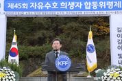 스페이스뉴스 스페이스뉴스 기자 | 이상일 용인특례시장은 6일 처인구 양지면 대대리 ‘자유수호희생자위령탑’에서 열린 제45회 자유수호희생자 합동위령제에 참석해 희생자들을 추모했다. 이날 행사엔 이상일 시장을 비롯한 박창무 한국자유총연맹 용인시지회장 등 지역 내 단체 관계자와 시민 50여 명이 참석했다. 행사는 희생자를 기리기 위한 추도 의식, 추념사·추도사, 조가 연주와 제창, 진혼무, 헌화 순으로 진행됐다. 이상일 시장은 추도사에서 “고대부터 자유는 인간에게 가장 중요한 가치로 자유를 얻지 못하면 우리는 평등해질 수가 없다”며 “선배 세대들이 목숨을 바치면서 자유를 지켜낸 모습만 봐도 자유는 그냥 얻어진 것이 아니다”라고 강조했다. 이 시장은 “우리가 매년 위령제를 지내는 것은 1990년 9월 21일 희생당하신 분들의 고귀한 넋을 우리가 면면히 잘 이어받아 선배 세대가 소중하게 지킨 이 나라를 더욱더 발전시켜 후배 세대들에게 물려주기 위함이라고 생각한다”며 “호국영령의 넋이 하늘나라에서도 늘 평안을 누리시길 기원드린다”고 했다. 자유수호희생자위령탑은 1950년 9월 21일 용인·화성·수원 등지에서