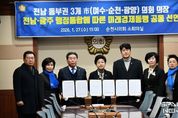 스페이스뉴스 스페이스뉴스 기자 | 광양시의회 최대원 의장은 지난 27일 전라남도와 광주광역시의 행정통합 논의가 본격화되고 있는 가운데, 백인숙 여수시의회 의장, 강형구 순천시의회 의장과 함께 전남·광주 행정통합에 따른 전남 동부권의 공동 발전과 미래 경쟁력 강화를 위한 '전남 동부권 미래경제동맹 공동 선언문'을 발표했다. 이번 공동선언은 행정통합이 대한민국 균형발전의 새로운 전기가 되어야 한다는 공감대 속에서, 국가 산업·에너지·물류의 핵심 거점인 전남동부권(여수·순천·광양)이 통합 과정에서 소외되지 않고 초광역 경제권의 중심축으로 자리매김해야 한다는 3개 시의회의 공동 의지를 담아 마련됐다. 3개 시의회 의장은 수도권 일극체제 완화와 국가균형발전을 목표로 하는 전남·광주 행정통합의 기본 취지에는 적극 공감하면서도, 통합 이후 정책과 재정, 대규모 국책사업이 광주권 및 전남 서부권에 과도하게 집중될 가능성에 대해서는 깊은 우려를 표명했다. 이에 성공적인 행정통합의 전제 조건으로 ▲전남동부권의 산업적 위상과 국가산업 거점 기능이 충분히 반영된 정책 균형 확보 ▲물류·수출·에너지 거점에 부합하는 광역 교통·물류 인