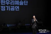 스페이스뉴스 스페이스뉴스 기자 | 용인특례시는 5일 오후 수지구 용인평생학습관 큰어울마당에서 ‘한우리예술단 정기공연’이 열렸다고 6일 밝혔다. 용인특례시가 후원하고 용인민예총이 주최·주관한 이날 행사는 우리 고유의 가락과 춤을 한자리에서 만날 수 있는 전통 공연으로 꾸며졌고, 이상일 시장은 1시간 40분간 진행된 공연을 끝까지 지켜본 뒤 공연단을 격려했다. 공연은 농악, 민요, 가야금, 검무 등으로 우리 민족 고유의 소리와 정서, 삶의 이야기를 그려내 큰 박수갈채를 받았다. 할미성 농악 보존회는 꽹과리, 장구, 북, 징, 태평소 등의 악기를 활용해 역동적인 농악 판굿을 선보였다. 용인 아리랑 보존회는 청춘가, 태평가, 창부타령 등 흥겨운 경기민요를 열창하며 분위기를 이끌었다. 이어 검무가 남지연씨의 검무공연이 펼져졌다. 앙상블 더 가야금은 대중에게 친숙한 고향의 봄, 꽃타령, 까투리타령 등을 가야금 병창으로 들려주며 국악의 매력을 선사했다. 한우리예술단은 화려한 가락이 돋보이는 설장구로 타악의 진수를 보여줬다. 이상일 시장은 축사에서 “올해로 32회