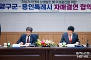 스페이스뉴스 스페이스뉴스 기자 | 용인특례시는 6일 강원특별자치도 양구군과 자매결연을 하고, 두 도시의 교류와 발전을 위해 적극 협력하기로 했다. 이상일 시장은 이날 양구군청 중회의실에서 서흥원 군수와 두 도시 간 우의를 증진하고 상호 교류‧협력하는 데 합의하고, 자매결연 협약서에 서명했다. 이번 협약으로 양구군은 시의 16번째 자매도시가 됐다. 이상일 시장은 “양구는 문화예술 분야에서 과감한 투자를 하고 있고, 양구군립박수근미술관은 2023년 양구 출신 박수근 화백의 1956년 작품 ‘가족’을 품었는데 두 도시가 앞으로 가족처럼 잘 지냈으면 한다”며 “이번 협약을 계기로 양 도시가 협력을 강화해서 함께 발전하길 기원한다”고 말했다. 이 시장은 “양구군과 용인시의 훌륭한 농산물들이 양 도시에서 소비하도록 서로 홍보하는 등 협조 체계를 갖추는 노력도 기울이자"라며 "양구에는 테니스장, 축구장 등 스포츠 시설이 아주 잘 갖춰져 있는 만큼 용인의 스포츠팀이나 단체들이 양구를 찾아 훈련하는 등 체육 분야의 협력도 도모하면 좋겠다"고 했다. 서흥원 군수는 “용인의 인프라와 비전이 대한민국 지방자