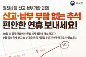스페이스뉴스 스페이스뉴스 기자 | 원천세 등 신고·납부기한 연장! 신고·납부 부담 없는 추석 편안한 연휴 보내세요! 10월 초 장기 연휴에 따른 납세자 불편을 해소하고자 9월 귀속 국세 신고·납부·제출 등의 기한을 5일 간 연장하기로 하였습니다. ■ 연장 대상 업무 ① 원천세 신고·납부 ②️ 증권거래세 신고·납부 ③ 인지세 납부 ④ 연금수령 개시 및 해지명세서 제출 ⑤ 취업 후 상환 학자금 대출(ICL) 원천공세 신고·납부 업무 [뉴스출처 : 국세청]
