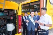 스페이스뉴스 스페이스뉴스 기자 | 충남교육청은 8월 22일 천안인애학교에 충남 최초로 친환경 수소전기버스를 통학버스로 도입하고, 김지철 교육감이 직접 차량 안전 점검과 학생 등교 맞이 행사를 진행했다고 밝혔다. 이번에 도입된 수소전기버스는 대기오염물질을 전혀 배출하지 않는 무공해 차량으로, 1회 충전 시 최대 680km까지 주행할 수 있다. 이를 통해 학생들의 쾌적하고 안전한 통학환경을 마련하는 것은 물론, 지역 대기질 개선에도 크게 기여할 것으로 기대된다. 김지철 교육감은 현장에서 차량 외관과 주요 안전장치를 직접 점검하고, 학생들의 등·하교 동선 및 운행 안전성 등을 꼼꼼히 확인했다. 또한 수소전기버스를 처음 이용하는 학생들을 맞이하며, 친환경 교통수단 도입의 의미와 ‘학생 안전 최우선’을 말하며, 등교 환경 조성의 취지를 강조했다. 최상렬 학교지원과장은 “학생들의 건강과 안전을 우선으로 친환경 통학버스 확대와 통학차량 안전관리 강화를 지속해 나갈 계획”이라며, “수소전기버스 도입을 계기로 차량 정기점검, 안전교육 등 통학환경을 지속적으로 관리·개선해 나가겠다”라고 밝혔다. [뉴