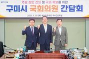 스페이스뉴스 스페이스뉴스 기자 | 구미시는 9월 30일 국회를 방문해 구자근, 강명구 지역구 국회의원과 간담회를 열고 지역 주요 현안과 국비 확보 전략을 논의했다. 이날 간담회에는 김장호 시장을 비롯해 구미시 주요 간부 공무원 등 30여 명이 참석했다. 시는 현안 사업 추진 상황과 정부 예산 동향을 공유하며 국회 차원의 전략적 지원 방안을 모색했다. 주요 현안사업으로는 △구미국가산업단지 1~3단지 연결교량 신설 △구미~신공항 철도건설 △대한민국역사박물관(구미산업화역사관) 건립 △새마을운동중앙회 및 연수원 유치 △'5극 3특'국가균형성장 전략 대응 △한국은행 구미지역본부 유치 △'방위산업 소재ㆍ부품ㆍ장비 특화단지'유치 △국가 푸드테크 클러스터 조성 등이 논의됐다. 주요 국비사업으로 △구미시 제조창업 인큐베이팅 센터 구축 △AX 실증산단 구축 사업 △지역 주력 중소기업형 인공지능 데이터 스페이스 구축 △차세대 디스플레이 핵심부품ㆍ소재 기술개발 △반도체 장비 챔버용 소재부품 제조 및 검증 테스트베드 구축 △수요확대형 배터리 테스트베드 구축 △구미 산동 국민체육센터 조성 △푸드테크 연구지원센터 구축 △펫테크 산업화 지원센터 구축
