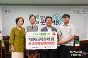 스페이스뉴스 스페이스뉴스 기자 | 백제중학교는 지난 7월 17일 학생들과 교직원이 함께 운영한 ‘일일 카페 및 플리 마켓’ 행사의 수익금 3백 642천 원을 어려운 이웃을 돕기 위한 성금으로 기탁했다. 이번 행사는 2022년 수익금 80여만 원의 기부를 시작으로 매년 이어져 온 학교의 전통으로, 2023년에는 호우피해 복구지원 200여만 원, 2024년에도 250여만 원을 기탁했다. 행사는 학생자치회와 교직원이 협력하여 기획하고 준비했으며 카페 운영과 판매 물품 준비 등 행사 전 과정에 학생과 교직원이 직접 참여하여 나눔의 의미를 더했다. 황현주 교장은 “학생들이 주도적으로 참여해 행사를 준비하고, 수익금을 기부하는 모습을 보며 큰 보람을 느꼈다.”라며 “이번 기부가 학생들에게 나눔을 실천하는 인재로 성장하는 좋은 기회가 되기를 바란다.”라고 말했다. 학생자치회장 이주연(3학년)은 “어려운 이웃들에게 조금이나마 도움이 되고자 하는 마음에 행사를 준비했다.”라며 “행사를 통해 나눔의 의미를 배우게 됐고 앞으로도 지역사회에 도움이 되는 활동에 참여하고 싶다.”라고 말했다. 이에 박정현 부여