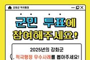 스페이스뉴스 스페이스뉴스 기자 | 강화군은 오는 10월 27일부터 10월 31일까지 5일간 강화군 홈페이지를 통해 ‘2025년 강화군 적극행정 우수사례 군민 투표’를 실시한다고 밝혔다. 이번 투표는 행정에 대한 군민의 체감도와 참여를 높이기 위해 마련된 것으로, 강화군 각 부서에서 제출한 18건의 적극행정 우수사례 중 1차 심사를 통해 선정된 8건을 대상으로 군민이 직접 우수사례를 선택할 수 있다. 투표는 강화군청 홈페이지 ‘적극행정 우수사례 투표’ 배너를 통해 간편하게 참여할 수 있으며, 투표 결과는 군 내부 심사 점수와 합산하여 ‘적극행정 우수사례 및 우수공무원’ 선정에 반영될 예정이다. 강화군은 이번 군민 투표를 통해 현장 중심의 적극행정 성과를 널리 공유하고, 공직자의 적극적인 업무 추진 문화를 확산시켜 나간다는 방침이다. 박용철 군수는 “군민이 체감할 수 있는 적극 행정은 진정한 소통의 출발점”이라며 “앞으로도 창의적이고 능동적인 공직문화가 정착될 수 있도록 적극행정을 지속적으로 추진하겠다”고 밝혔다. [뉴스출처 : 인천시 강화군]