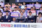 스페이스뉴스 스페이스뉴스 기자 | 광주 지역사회와 정치권이 고속열차(KTX) 호남선 운행 차별과 불공정 해소를 정부에 강력 촉구했다. 광주광역시는 광주광역시의회, 5개 자치구, 광산구의회, 시민 등과 함께 23일 광주송정역 광장에서 ‘KTX 호남선 차별·불공정 해소 촉구 결의대회’를 열고 KTX 운행 개선안을 정부에 건의했다. 이날 결의대회에는 강기정 시장을 비롯해 서용규 광주시의회 부의장과 시의원들, 박병규 광산구청장, 김명수 광산구의회 의장 등 30여명이 참석했다. 이들은 “KTX 호남선 운행 차별이 극심하다”며 당장 개선을 요구했다. 광주시는 평일 기준 1일 KTX 운행 횟수는 경부선 115회, 호남선 55회로 경부선이 2배 넘게 많다. 열차를 이용할 수 있는 공급 좌석은 경부선이 1일 9만9001석으로, 호남선 3만7573석보다 2.6배 많으며, 주말에는 경부선과 3배 차이로 벌어진다. 이는 고속열차 운행 배차 횟수뿐만 아니라 차량 규모(좌석수, 신형)에서도 차별하고 있다는 것이다. 실제 KTX 이용객이 많아지는 주말(금~일) 경부선 KTX는 1일 21회