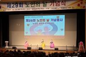 스페이스뉴스 스페이스뉴스 기자 | 청양군은 30일 청양군 문화예술회관에서 10월 경로의 달을 맞아 대한노인회 청양군지회 주관으로 제29회 노인의 날 기념행사를 성대히 개최했다. 이날 행사에서는 노인복지 발전에 기여한 모범 어르신과 관계자 34명이 수상의 영예를 안았다. ▲국회의원 표창 4명 ▲도지사 표창 2명 ▲군수상 10명 ▲의장상 10명 ▲노인회 중앙회장상 2명 ▲노인회 연합회장상 1명 ▲청양군지회장상 5명 등이 전수됐다. 또한 청양에어로빅 동아리를 비롯한 6개 팀의 다채로운 축하 공연이 이어져 참석한 어르신들과 내빈들에게 즐거움과 감동을 선사했다. 김돈곤 군수는 “경로의 달을 맞아 함께 자리해주신 어르신들께 깊은 존경과 감사를 드린다”며 “앞으로도 어르신들이 행복하고 존경받는 지역사회를 만들기 위해 경로복지 증진에 최선을 다하겠다”고 밝혔다. [뉴스출처 : 충청남도청양군]