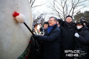 스페이스뉴스 스페이스뉴스 기자 | 새해 첫날 새벽, 배봉산 정상에 사람들의 숨이 하얗게 피어올랐다. 서로의 장갑을 고쳐주고, 어깨를 두드리며 “새해 복 많이 받으세요”가 오갔다. 동대문구가 1일 전농동 배봉산 근린공원 정상부에서 ‘2026 배봉산 해맞이 행사’를 열고 ‘붉은 말의 해’의 첫 아침을 구민들과 함께 맞았다. 서울 동대문구에 따르면 이날 행사는 관현악 연주로 문을 열어 새해 기념 타종과 새해 인사, 덕담 나눔으로 이어졌고, 새출발을 기원하는 팝페라 축하공연이 더해지며 분위기를 끌어올렸다. 특히 이 구청장의 ‘신년운세’ 4행시 덕담이 현장을 한층 뜨겁게 달궜다. 구민들이 “신, 년, 운, 세”를 한 글자씩 운을 띄우면 이 구청장이 한 구절씩 받아 읊는 방식으로 진행돼 웃음과 박수가 이어졌다. 이 구청장은 다음과 같이 덕담을 전했다. “신: 신나게 달릴 준비가 된 새해, 년: 연간의 꿈들이 하나씩 움직이기 시작하고, 운: 운을 끌어당기는 우리의 열정이, 세: 세상을 향해 힘차게 뻗어 나가길!” 행사 참석자들은 “새해 덕담이 이렇게 즐거울 줄 몰랐다”며 환호했고, 아이들까지 따라 읽는 모습이 곳곳에서 눈에 띄었다. 일