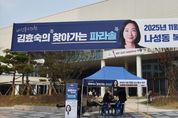스페이스뉴스 스페이스뉴스 기자 | 김효숙 세종특별자치시의회(나성동, 더불어민주당) 부의장이 시민과 직접 소통하고 세종시와 나성동 발전을 위해 고견을 듣는 ‘찾아가는 파라솔’ 행사를 13일 오전 10시부터 오후 5시까지 나성동 행복누림터 앞에서 개최했다. 지난 2023년 11월 의정보고회 개최 이후 더 많은 시민을 만나기 위해 지난해부터 11월이면 야외에 아침부터 저녁까지 파라솔을 펴고 주민과 당원을 만나는 자리를 마련하고 있다. 김효숙 부의장은 “정해진 짧은 시간 동안 이뤄지는 보고회 형식으로는 더 많은 분을 뵙기 어려워 하루 종일 시민을 기다리는 현장 상담 방식을 바꿨다”며 “생각보다 많은 분이 찾아와주셨는데 오전 10시부터 시작인데도 오전 9시 20분부터 기다리고 계시는 시민분도 계셨고, 오가다 편하게 들리거나 지난해에 이어 또 방문하신 단골 주민도 생겼다”고 설명했다. 이어 “우리 지역을 위해 일하는 시의원과 커피 한 잔 하며 편하게 현안에 대해 대화할 수 있다는 것을 가장 좋게 평가하시는 것 같다”며 “나성동 학생들의 통학 및 진학, 도시상징광장 활성화, 어반아트리움 등 상가공실 문제 등 나성동 주요 현