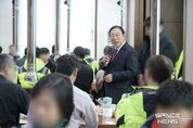 스페이스뉴스 스페이스뉴스 기자 | 최민호 세종특별자치시장이 새해를 맞아 환경 관리 일선에서 묵묵히 근무하는 환경관리원들의 노고를 격려하고 감사의 마음을 전했다. 최민호 시장은 12일 연기면 소재 식당에서 시 환경관리원과 운전직 공무원 등 80여 명과 오찬을 함께하며 새해 인사를 전했다. 이 자리에서 최 시장은 시민을 위해 쾌적한 생활환경 조성을 책임지고 있는 현장 근로자들에게 깊은 감사를 표했다. 또 환경관리원과 운전직 공무원에게 안전이 최우선임을 강조하고 안전 장비 착용과 철저한 작업 수칙 준수를 당부했다. 최민호 시장은 “위생적이고 청결한 도시에서 살아갈 수 있는 건 여러분들의 노고 덕분”이라며 “구내식당 조성 등 여러분의 노고에 답할 수 있는 복지 마련을 위해 노력하겠다”고 말했다. 시는 환경관리원을 대상으로 현장 중심 소통을 강화하고 환경관리 업무의 안정적 추진과 근무 만족도 향상에 지속 노력한다는 방침이다. [뉴스출처 : 세종시]
