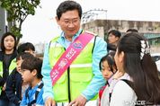 스페이스뉴스 스페이스뉴스 기자 | 이상일 용인특례시장은 14일 아침 처인구 고림로에 위치한 고진초등학교 정문 횡단보도에서 어린이들의 안전한 통학환경 조성을 위한 교통지도 봉사활동에 참여하고 학교 주변 통학로를 점검했다. 이상일 시장은 서경란 고진초 교장, 녹색어머니회·학부모회·학생 등 60여명과 함께 등굣길 어린이들이 안전하게 길을 건널 수 있도록 돕고 운전자들에게 ‘어린이보호구역 내 서행’을 당부하는 교통안전 캠페인을 펼쳤다. 이 시장은 통학로 현장을 둘러보며 ▲고림고 유리방음벽 모서리 보호대 설치 ▲고림고~힐스테이트용인고진역 구간 횡단보도 너비 확대 ▲해당 구간 도로의 물고임 등 도로시설물 일제정비 ▲통학로 낙엽제거(보행자 미끄러짐 방지) 등의 추가 건의사항을 꼼꼼히 챙겼다. 이상일 시장은 녹색어머니회와 학부모회 회원들에게 “아이들의 등굣길을 지켜주셔서 감사 드린다”며 “학생들이 마음 놓고 통학할 수 있는 안전한 도시 환경을 만드는 것이 무엇보다 중요한 만큼 시에서도 현장을 잘 살펴 필요한 조치를 신속히 진행하겠다”고 말했다. 이 시장은 10월과 11월에도 용인신촌초, 백현초, 구갈초, 신월초,