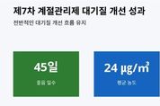 스페이스뉴스 스페이스뉴스 기자 | 경기도가 지난해 12월부터 올해 3월까지 ‘제7차 미세먼지 계절관리제’를 시행한 결과, 최근 3년간 초미세먼지 평균 농도가 24㎍/㎥ 유지되는 등 안정적인 대기질을 유지하고 있다고 9일 밝혔다. 2019년 12월~2020년 3월 처음 시작한 미세먼지 계절관리제는 고농도 미세먼지가 집중 발생하는 겨울부터 이른 봄철에 배출가스 5등급 차량 운행 제한, 공공부문 차량 2부제, 사업장 및 공사장 관리 강화 등 다양한 미세먼지 저감 대책을 추진하는 것이다. 경기도 보건환경연구원 분석에 따르면 지난해 12월부터 올해 3월 도내 초미세먼지 평균 농도는 24㎍/㎥를 기록했다. 2022년 12월~2023년 3월 28㎍/㎥에서 다음 연도에 24㎍/㎥로 하락했고 올해도 동일한 수준을 유지하고 있다. 특히 호흡기 건강에 직결되는 초미세먼지 ‘좋음’(15㎍/㎥ 이하) 등급 일수는 제도 시행 전인 2018년 12월~2020년 3월 동안 단 11일에 불과했으나 지난해 12월~올해 3월에는 45일로 4배 이상 증가했다. 월별 농도 추이를 살펴보면 지난해 12월 20㎍/㎥를 시작으로 올해 1월에