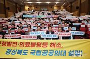 스페이스뉴스 스페이스뉴스 기자 | 지난 12월 17일 국회의원회관 대회의실에서 김형동 국회의원과 임미애 국회의원이 공동 주최한 ‘경상북도 국립․공공의대 설립 국회토론회’가 열렸다. 이날 토론회에는 이철우 경상북도지사, 권기창 안동시장 등 지자체 주요 인사와 경상북도 국립의과대학 설립 범시도민단을 포함한 시민단체 관계자 등 약 450명이 참석해 경북 지역 의료 여건과 국립의과대학 설립 필요성에 대한 논의를 이어갔다. 또한 권오을 국가보훈부 장관, 김도읍 국민의힘 정책위원회 의장, 김영호 더불어민주당 교육위원회 위원장 등 여야 의원 30여 명이 참석해 경북 국립의대 설립에 대한 관심을 보였다. 1부 개회식에서는 참석자들이 ‘경북 도민의 염원, 국립․공공의대 설립’이라는 문구가 적힌 손팻말을 들고 지역 의료 현안에 대한 공감의 뜻을 함께 표현했다. 2부에서는 유천 국립목포대 의과대학설립추진단 부단장이 ‘전남 국립의대 설립 현황 및 계획’을, 정태주 국립경국대학교 총장이 ‘경북도 국립․공공의대 설립의 필요성과 추진 방향’을 주제로 발표했다. 이어진 토론에서는 정태주 총장이 좌장을 맡고 김윤 국