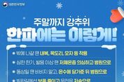 스페이스뉴스 스페이스뉴스 기자 | 주말까지 강추위 한파에는 이렇게! - 밖에 나갈 땐 내복, 목도리, 모자 등 착용 - 심한 한기, 발음 이상 땐 저체온증 의심하고 병원으로 - 동상일 땐 비비지 말고, 온수에 담가준 뒤 병원으로 - 빙판길에선 보폭 줄이고 운전은 저속으로 - '한파쉼터' 등 따뜻한 장소에서 휴식 (행정복지센터·편의점·은행·경로당 등) · 내 주변 한파쉼터 찾기 안전디딤돌, 네이버, 카카오, 티맵 [뉴스출처 : 문화체육관광부]