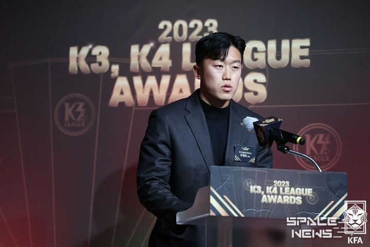 7일 오후 2시 서울 광화문 교보생명 빌딩 컨벤션홀에서 2023 K3, K4리그 시상식이 개최됐다. 올 시즌 12골을 터뜨린 우제욱은 제갈재민(FC목포)과 함께 공동 득점왕을 수상했다. 우제욱은 “개인상을 받긴 했지만 올해 팀 성적이 좋지 않아서 아쉽다. 이 상을 토대로 다음 시즌 더 나은 모습을 보일 수 있도록 노력하겠다”는 소감을 전했다.