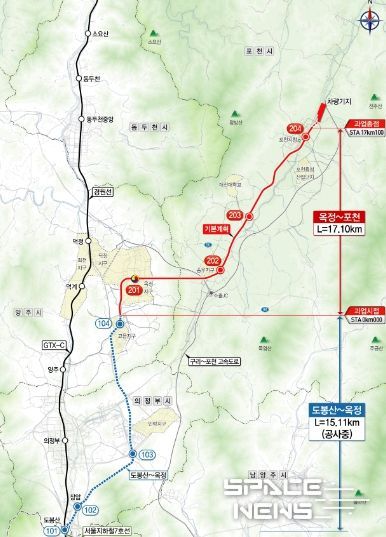 한편, 옥정~포천 광역철도 건설사업은 2019년 1월 정부의 국가균형발전 프로젝트에 선정돼 예비타당성조사가 면제된 사업으로 이후 사업계획 적정성 검토 등의 절차를 거치며 당초 단선에서 복선으로 변경해 기본계획을 수립했다.