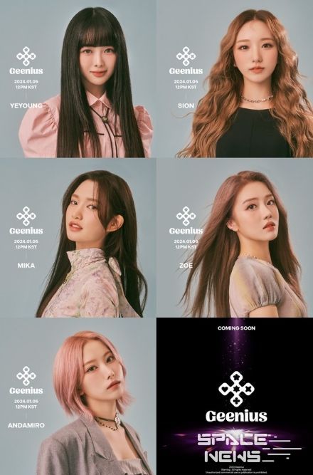 지난 21일 공식 SNS를 통해 지니어스(예영, 시온, 미카, 조에, 안다미로)의 빛나는 비주얼이 담긴 첫 번째 프로필 이미지가 공개됐다.