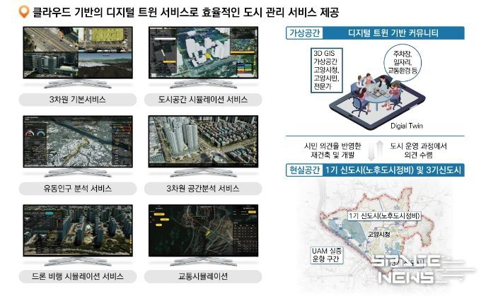 현실과 동일한 가상세계(디지털 트윈)를 구축하여 건물, 도로, 도시계획 등 도시문제 해결에 활용한다. 1기 신도시 재건축, 3기 신도시 계획, 도심항공교통(UAM) 경로, 홍수예방, 지반침하 등 각종 과제에 대한 모의실험(시뮬레이션)으로 최적의 해결방안 모색에 활용할 수 있다. 실험 결과는 정책결정의 자료로 사용하여 효율적인 도시계획과 재난관리가 가능해질 전망이다.