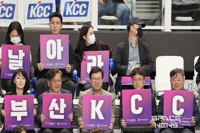 어제(5일) 박 시장은 수원에서 열린 챔피언 결정전 5차전 경기를 네 번째 직관하며, ‘날아라! 부산 케이씨씨(KCC)’를 직접 외치며 다시 한번 케이씨씨(KCC)를 향한 열띤 응원을 현장에서 펼쳤다.
