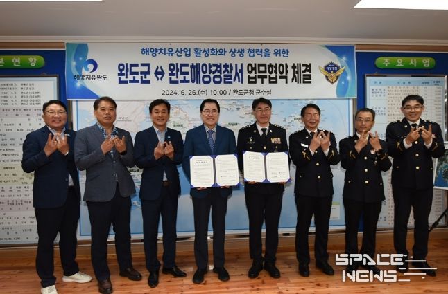 스페이스뉴스 스페이스뉴스 기자 | 완도해양경찰서는 지난 26일 완도군과 해양치유산업 활성화 및 상생 협력을 위한 업무협약을 체결했다고 밝혔다.