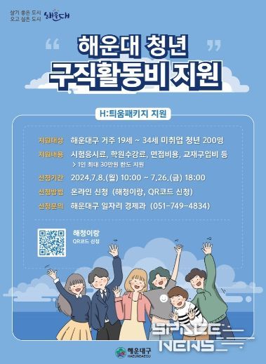 스페이스뉴스 스페이스뉴스 기자 | 해운대구는 청년 구직활동비(취업 합격 H:틔움패키지) 지원사업 대상자를 모집한다.
