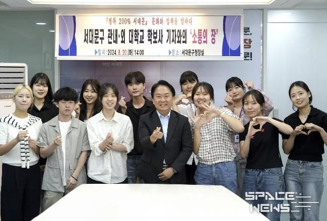 스페이스뉴스 스페이스뉴스 기자 | 이성헌 서대문구청장이 20일 오후 구청 회의실에서 신촌글로벌대학문화축제와 청년정책, 신촌·이대 상권 활성화 등을 주제로 대학교 학보사 기자들과 간담회를 가졌다.