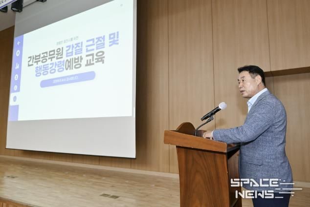 스페이스뉴스 스페이스뉴스 기자 | 포천시는 지난 28일 5급 이상 간부공무원 66명을 대상으로 갑질 근절 및 공무원 행동강령 교육을 실시했다.
