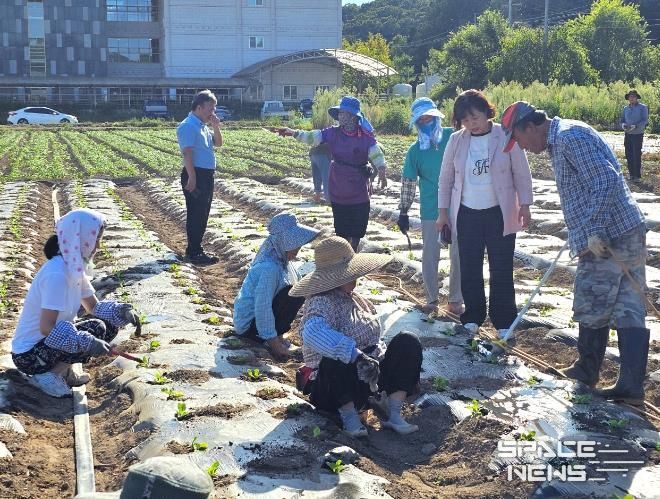스페이스뉴스 스페이스뉴스 기자 | 의성군은 8월 28일, 30일 양일간 치매친화마을(안계면 위양2리, 의성읍 철파리) 치유텃밭에서 마을주민 모두가 배추 모종 심기에 나섰다.