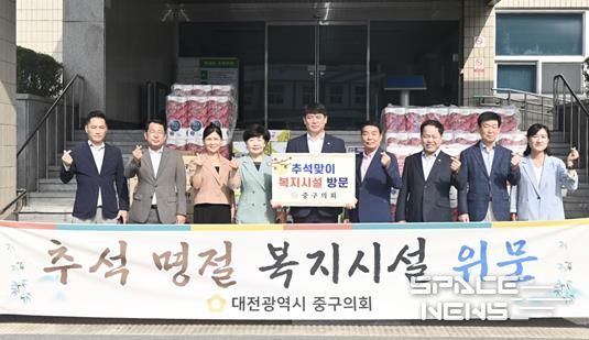 스페이스뉴스 스페이스뉴스 기자 | 대전중구의회는 추석 명절을 앞둔 9일 관내 사회복지시설 6개소를 방문해 위문품을 전달했다.