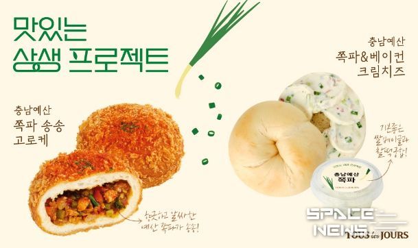 스페이스뉴스 스페이스뉴스 기자 | 예산군은 CJ푸드빌㈜과 손잡고 CJ푸드빌이 운영하는 뚜레쥬르에서 지역 특산물인 예산 쪽파를 활용한 신제품 ‘충남 예산 쪽파 송송 고로케’와 ‘충남 예산 쪽파·베이컨 크림치즈’를 전국 뚜레쥬르 매장에 9월 10일부터 출시한다고 밝혔다.