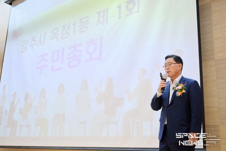 스페이스뉴스 스페이스뉴스 기자 | 강수현 양주시장이 관내 옥정고등학교 체육관 3층에서 개최한 ‘2024년 옥정1동 주민총회’에 참석해 옥정1동 주민자치회 회원들의 노고를 격려했다.