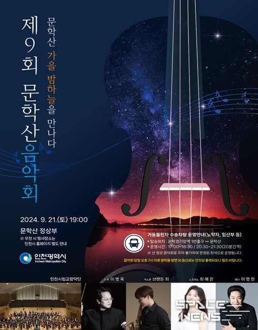 스페이스뉴스 스페이스뉴스 기자 | 인천광역시는 오는 9월 21일 문학산 정상에서 ‘문학산 가을 밤하늘을 만나다’를 주제로 제9회 문학산 음악회를 개최한다.