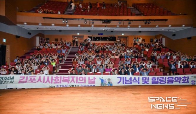 스페이스뉴스 스페이스뉴스 기자 | 김포시사회복지협의회는 11일 김포아트홀 대강당에서 사회복지종사자와 내빈 등 400여명이 참석한 가운데 사회복지에 대한 이해를 증진하고 사회복지 종사자 활동 장려를 위한'제25회 사회복지의 날 기념식 및 힐링음악회'를 개최했다.