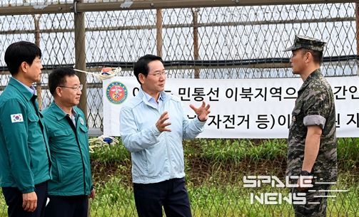 스페이스뉴스 스페이스뉴스 기자 | 북한이 대남 확성기로 계속 소음을 방출하고 있는 가운데 유정복 인천광역시장이 9월 18일 접경지역인 강화군 송해면 일대를 방문해, 소음방송을 직접 청취하고 쓰레기 풍선 낙하 처리 대응 상황을 확인했다.