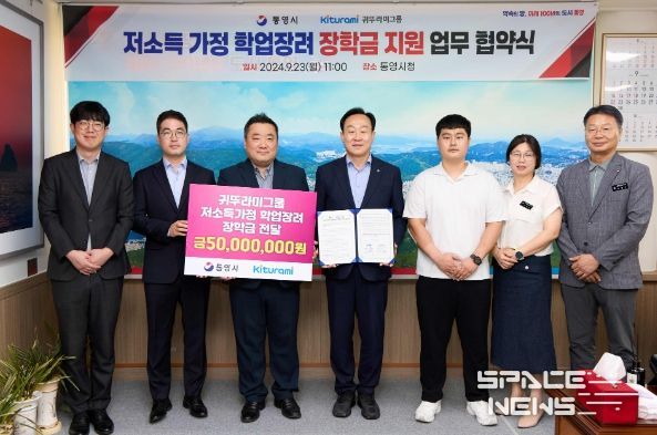 스페이스뉴스 스페이스뉴스 기자 | 통영시와 귀뚜라미그룹(회장 최진민)은 지난 23일 통영시청에서 지역 내 저소득 및 다자녀가정 학생들의 학업장려를 위한 장학금 지원 업무협약을 체결했다.