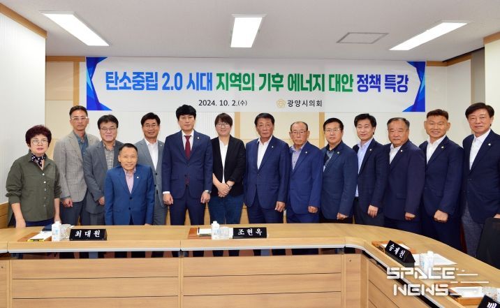 스페이스뉴스 스페이스뉴스 기자 | 광양시의회는 지난 2일 의회 상담실에서 시의원과 직원들을 대상으로 탄소중립 실현과 기후변화 위기에 대한 인식을 높이고자 녹색전환연구소 이유진 소장을 초청해 특별 강연을 실시했다.