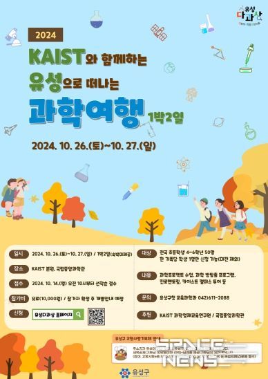 스페이스뉴스 스페이스뉴스 기자 | 대전 유성구는 10월 26일부터 KAIST와 함께하는 가족친화형 1박 2일 과학체험 프로그램인 ‘유성으로 떠나는 과학여행’을 개최한다.
