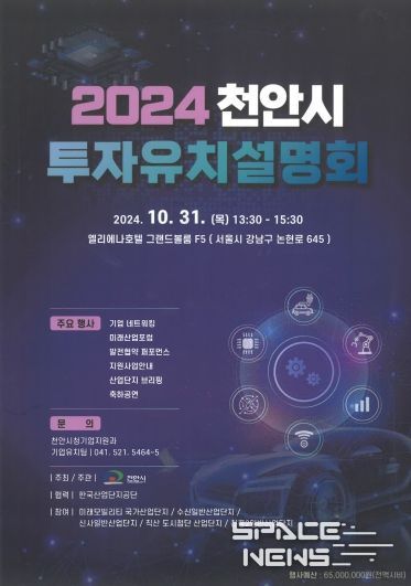 스페이스뉴스 스페이스뉴스 기자 | 천안시는 오는 31일 서울 강남구 엘리에나호텔에서 수도권 기업 유치를 위한 투자유치설명회를 개최한다.