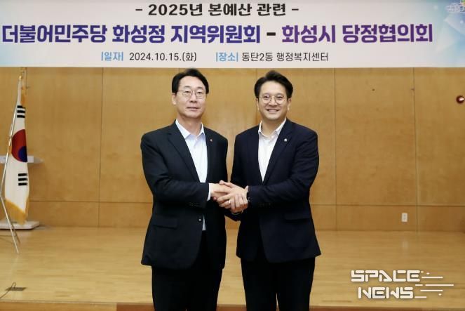 스페이스뉴스 스페이스뉴스 기자 | 15일, 전용기 국회의원(더불어민주당 화성정 지역위원장)과 정명근 화성시장을 비롯한 도의원, 시의원, 관계 공무원 등이 동탄2동 행정복지센터 대회의실에 모여 지역현안을 논의하기 위해 당정협의회를 개최했다.
