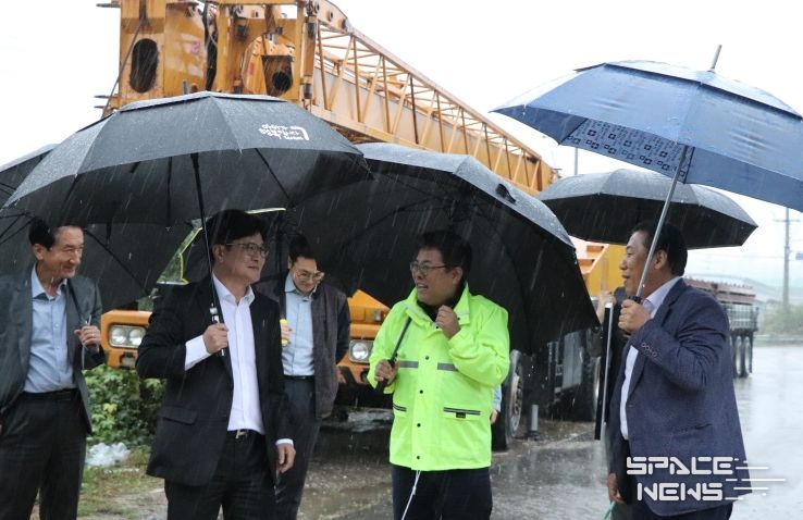 김동구 한강유역환경청장은 폭우속에서도 이날 김병수 시장과 함께 현장을 꼼꼼히 살폈다.