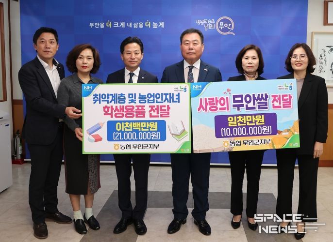 스페이스뉴스 스페이스뉴스 기자 | NH농협은행 무안군지부은 21일 무안군청을 찾아 1,000만원 상당의 쌀 400포와 2,100만원 상당의 학생용 가방 140세트를 기탁했다.