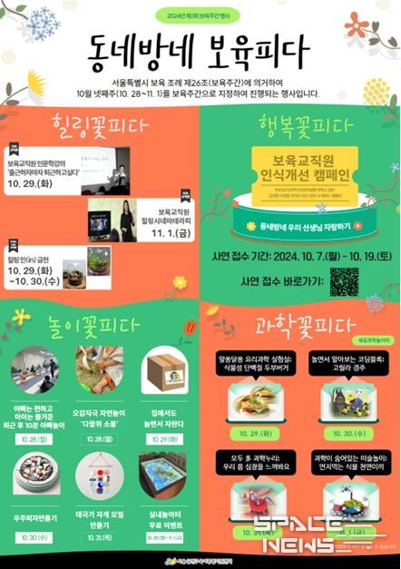 스페이스뉴스 스페이스뉴스 기자 | 금천구는 10월 28일부터 11월 1일까지 5일간 보육주간행사 ‘동네방네 보육피다’를 개최한다고 밝혔다.