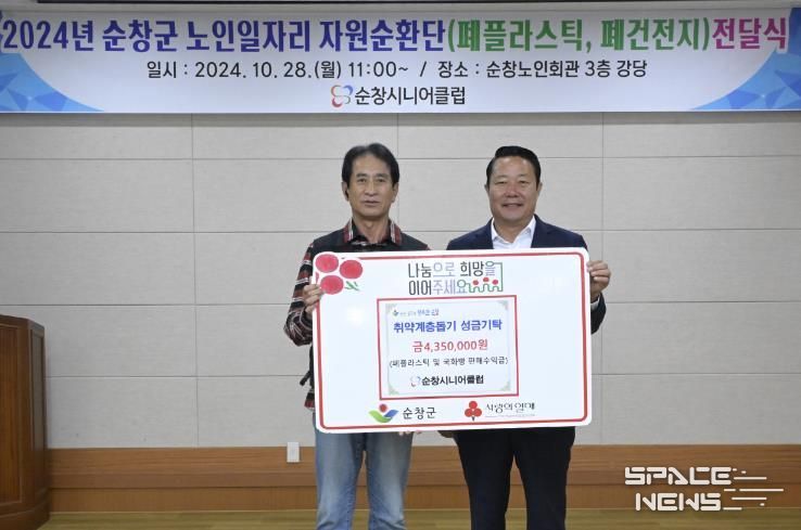 스페이스뉴스 스페이스뉴스 기자 | 순창군의 역점 시책인 노인일자리사업이 어르신들의 활기찬 노후생활에 큰 힘이 되는 가운데, 여기에 참여 어르신들의 뜻깊은 나눔까지 더해져 지역사회를 훈훈하게 하고 있다.