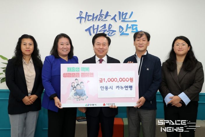 스페이스뉴스 스페이스뉴스 기자 | 안동시 카누연맹(회장 김재원)은 ‘저출생 극복 성금모금 캠페인’에 동참하고자 저출생 극복 성금 1백만 원을 29일 안동시에 전달했다.