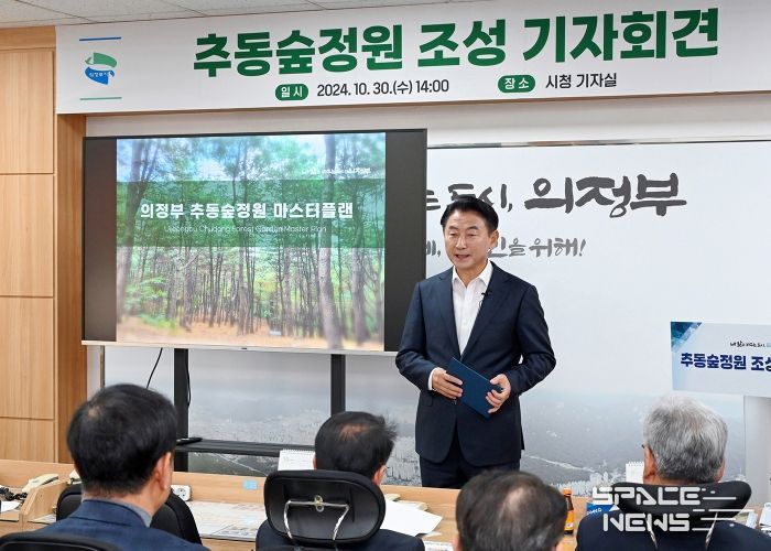 김동근 의정부시장은 10월 30일 시청 기자실에서 정례 기자회견을 열고 시 중심에 위치한 추동공원 내에 3개의 상징공간, 12개의 정원, 5개의 테마숲을 숲둘레길로 연결하는 ‘추동숲정원 조성 종합계획’을 발표했다.