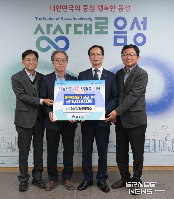 스페이스뉴스 스페이스뉴스 기자 | 음성상공회의소는 지난 30일 음성군청을 방문해 관내 저소득 주민을 위해 사용해달라며 성금 1800만원을 기탁했다.