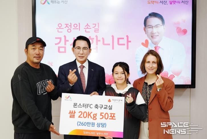 스페이스뉴스 스페이스뉴스 기자 | 충남 서산시는 14일 몬스터FC 축구센터가 어려운을 이웃을 위한 사랑의 쌀 1톤을 기탁했다고 밝혔다.