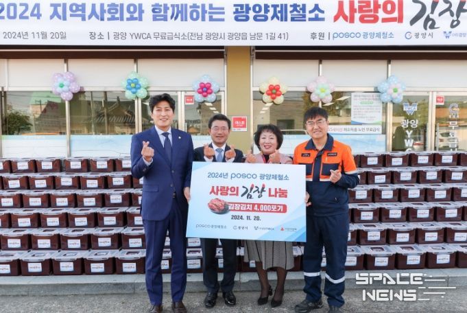 스페이스뉴스 스페이스뉴스 기자 | 광양시는 지난 20일 포스코 광양제철소가 관내 취약계층 514가구와 복지시설 36개소에 김장김치 4,000포기를 전달했다고 22일 밝혔다.
